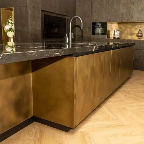 After application, the metal top layer can be finished in many different ways. For example, it can be sanded, polished, patinated or oxidized. It can also be waxed, sandblasted, treated with steel wool or sanded with oil. The possibilities are truly endless. Whatever you choose, for a metal finish the end result is always unique. Any design is ‘one of a kind’.